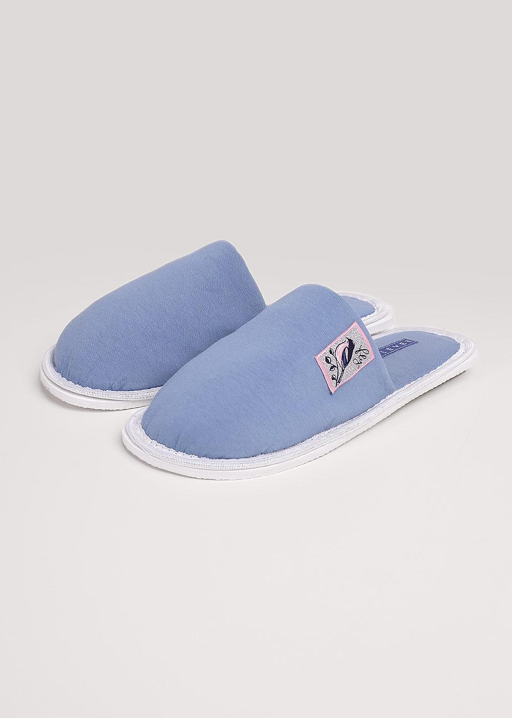 Лёгкие, домашние тапочки для дома с закрытым носом из хлопкового трикотажного полотна, нашивка. Толстая подошва.