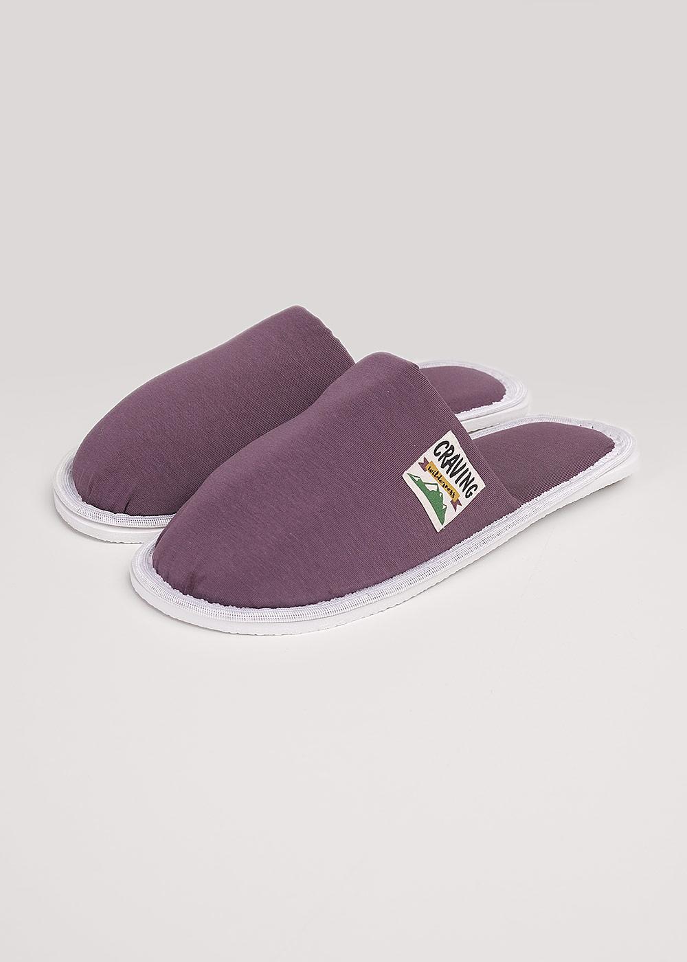 Лёгкие, домашние тапочки для дома с закрытым носом из хлопкового трикотажного полотна, нашивка. Толстая подошва.