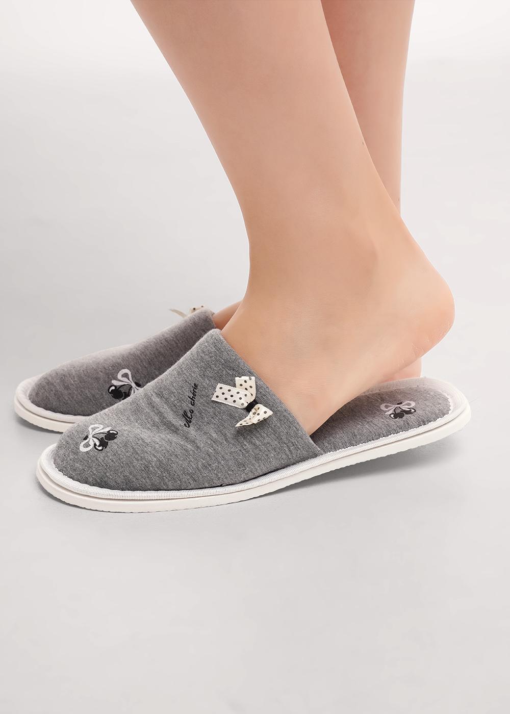 Лёгкие, домашние тапочки с закрытым носом из трикотажного полотна, с нашивкой бант. Толстая подошва.