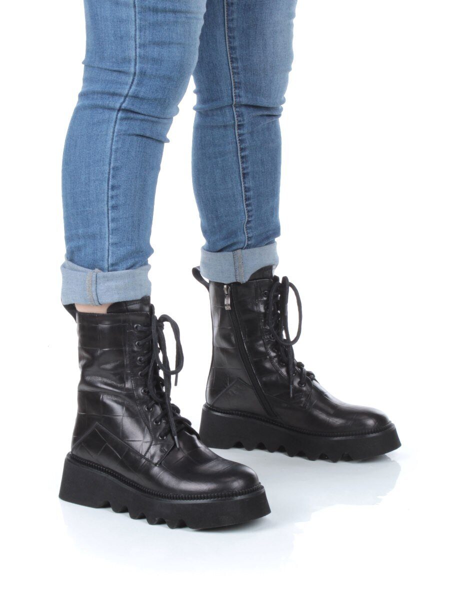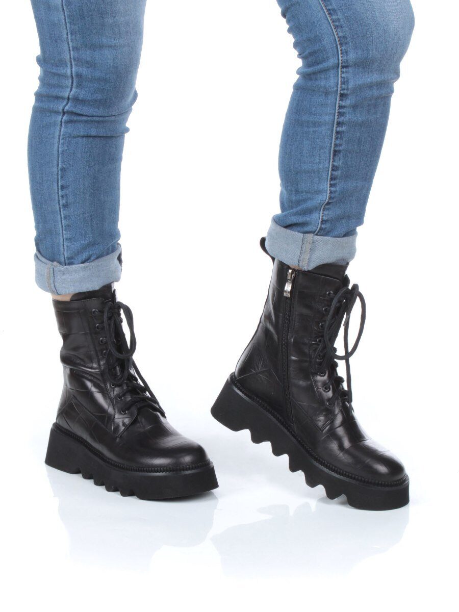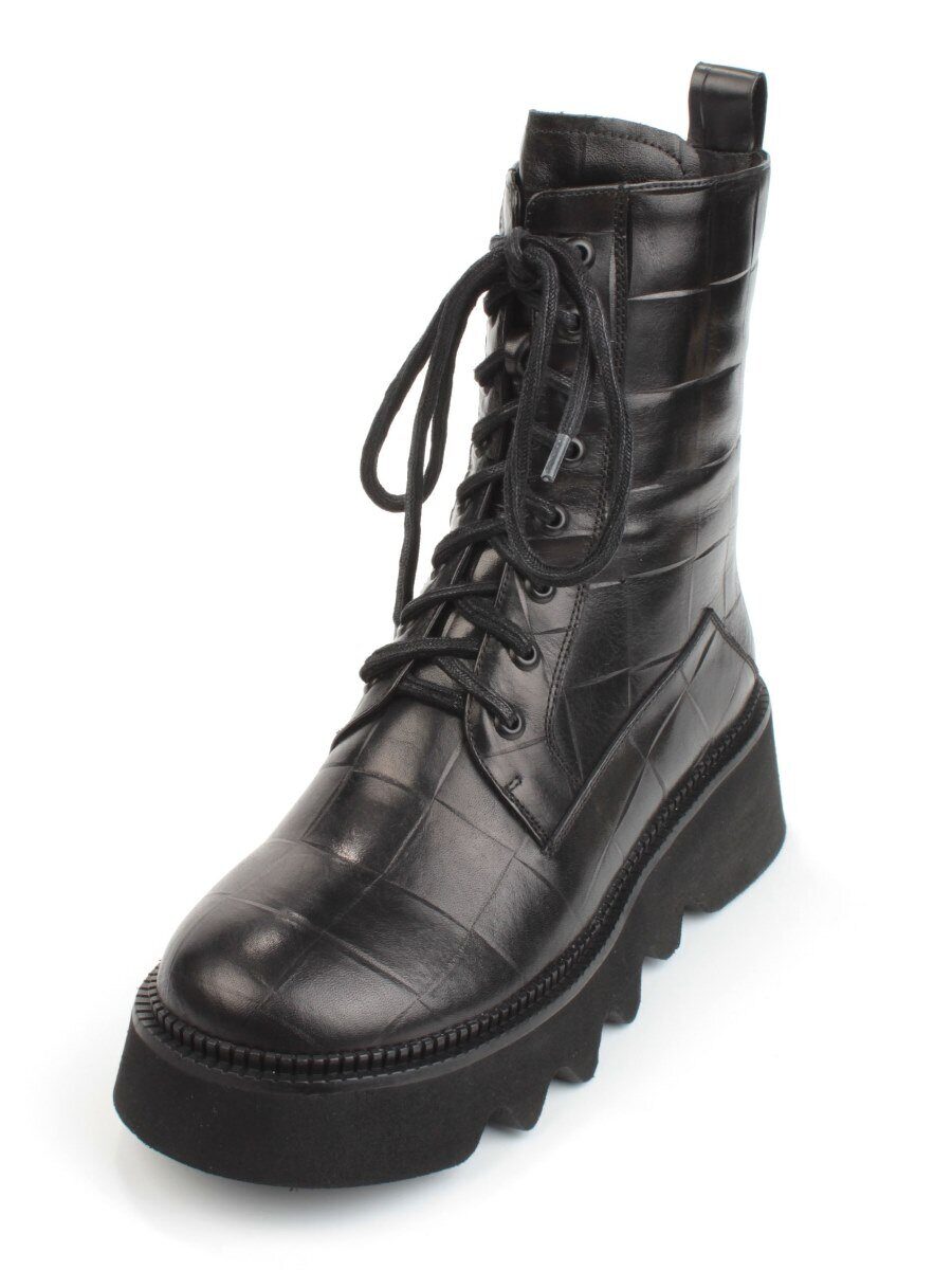 01-C1110-1 BLACK Ботинки демисезонные женские (натуральная кожа, байка)