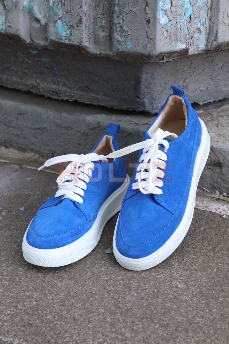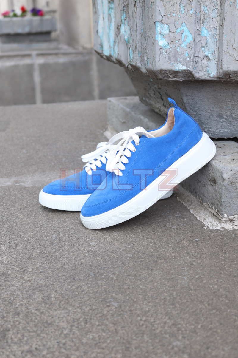 Женские ярко-голубые кеды с обсоюзкой Lusi. Можно сшить в 4-х цветах подошвы, из любого материала, любого цвета. На любую ширину.