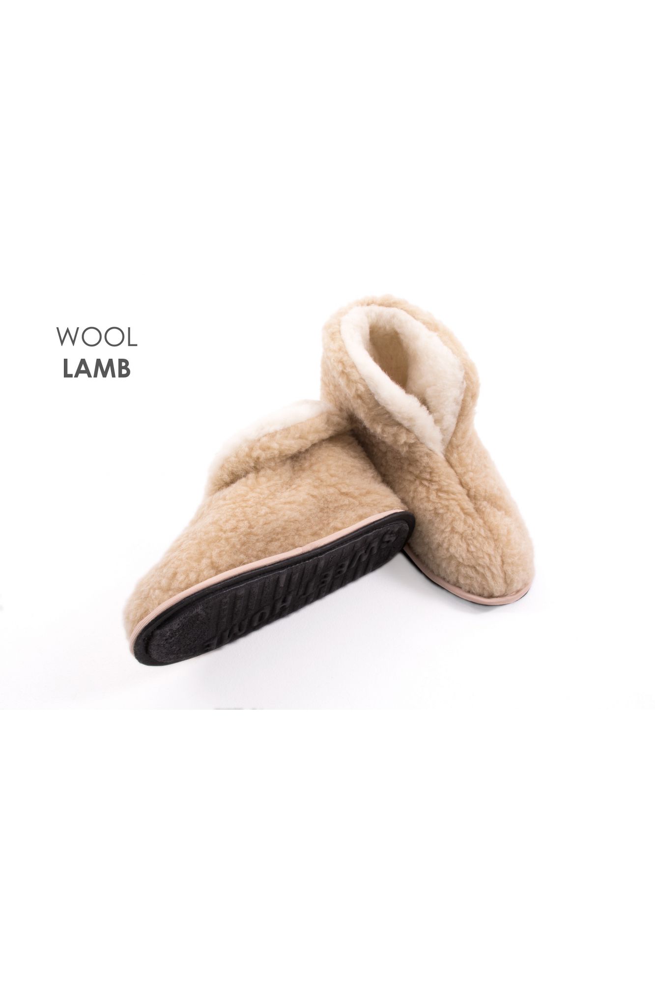 Наименование изделия: Чуни, Цвет:  бежевый (с контрастной отделкой), Материал: наружный и внутренний материал 100% овечья шерсть., Подошва: ЭВА, износостойкая, прошитая, толщина 8мм. или войлок, Эвапласт - пришивная подошва 8мм, с антискользящим рисунком, можно стирать в машине, очень ноская, не деформируется, ге крошится., Профилактика заболеваний:, -          простудных за счет создания эффекта «сухого тепла» и уникальных влагоотводящих свойств шерсти;, -          венозных благодаря микромассажу ворсинками шерсти на капиллярном уровне, -          микротрещин и грибков, быстрому заживлению которых способствует природный антисептик ланолин, -          опорно-двигательного аппарата (ревматизм, артриты, боли в суставах), невритов и невралгии и т.д., Рекомендации по уходу: допускается стирать в автоматической стиральной машине в режиме «шерсть»., Изготовитель: WOOLLAMB собственное  швейное производство без использования химических клеющих материалов и дополнительных тепловых обработок.