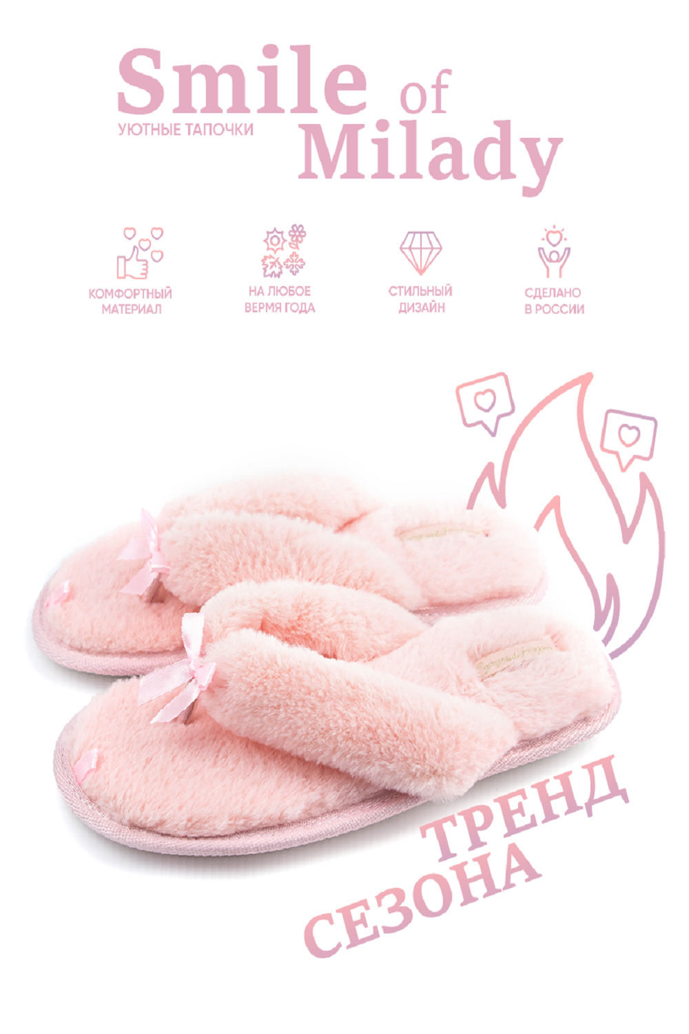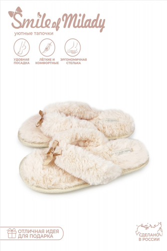 Комнатные женские тапочки вьетнамки от бренда Smile of Milady - стильная и комфортная домашняя обувь. В этих меховых тапках нога отдыхает после насыщенных рабочих будней и активных выходных. Модель теплая, пригодится в межсезонье и зиму. Мягкие домашние сланцы можно взять с собой в путешествие, в командировку, на дачу. Запасите несколько пар для гостей. Шлепанцы для женщин подойдут на широкую ногу, полную стопу. Шлепки имеют гибкую подошву из экологичного материала эва (eva). Она не скользит, достаточно мягкая и прочная, обеспечит амортизирующий эффект, снижающий усталость ног. Это красивая дизайнерская домашняя обувь, в которой приятно проводить время и заниматься делами.