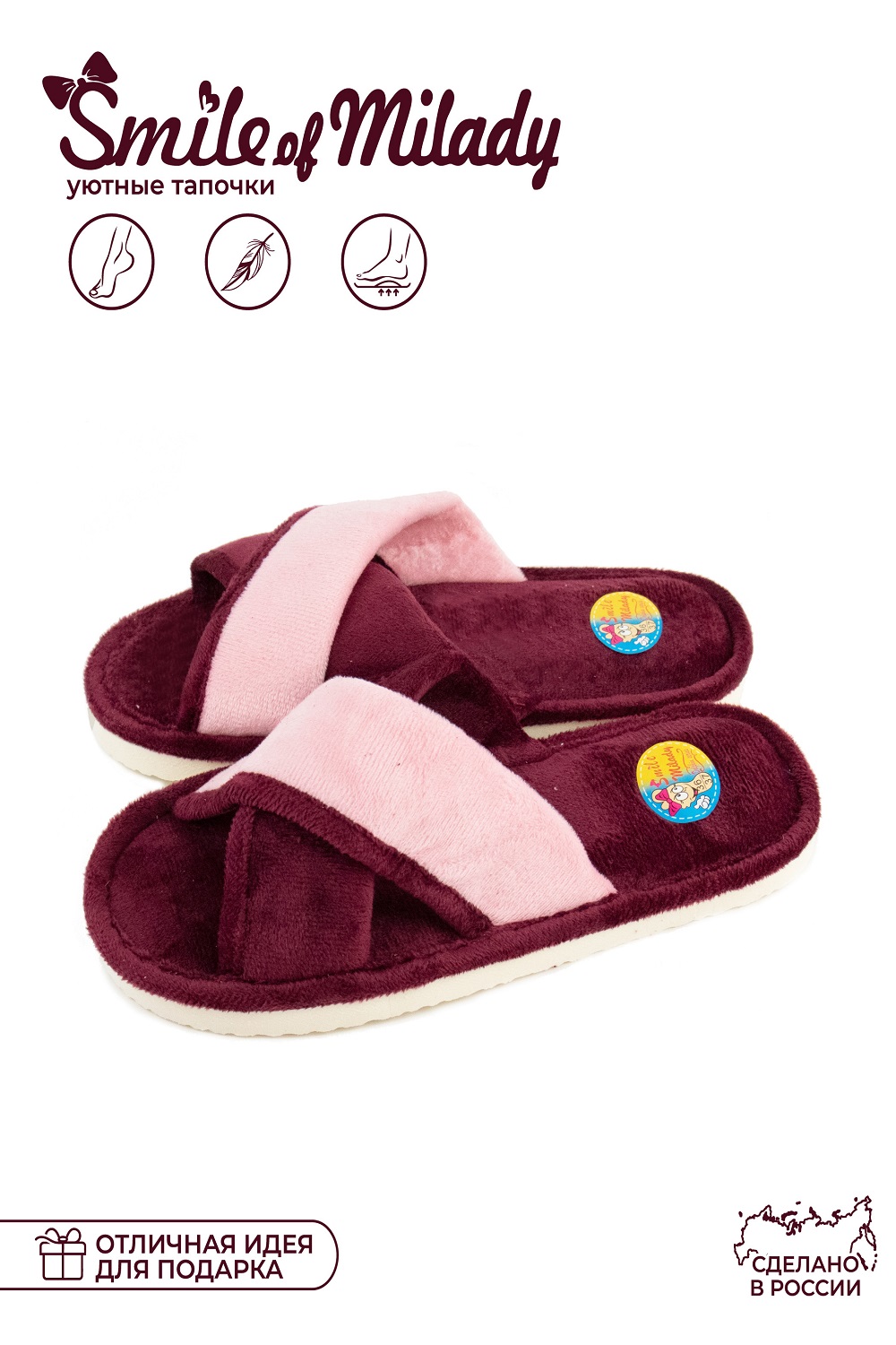 Стильные домашние женские тапочки от бренда Smile of Milady несомненно станут Вашими любимцами! Тапочки женские домашние для тех, кто ценит красоту, удобство и комфорт. Актуальный дизайн и расцветки, помогут оставаться в тренде даже в стенах собственного дома. Теплые тапочки женские домашние открытые подарят тепло и комфорт Вашим ножкам. Домашние тапочки можно носить дома, на даче, а так же удобно взять с собой в дорогу. Дополните свой домашний образ стильными и ультрамодными тапочками.