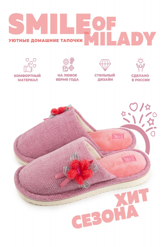 Комнатные женские тапочки от бренда Smile of Milady - стильная и комфортная домашняя обувь. В этих мягких закрытых тапках нога отдыхает после насыщенных рабочих будней и активных выходных. Модель теплая, пригодится в межсезонье и зиму. Мягкие домашние сланцы можно взять с собой в путешествие, в командировку, на дачу. Запасите несколько пар для гостей. Шлепанцы для женщин подойдут на широкую ногу, полную стопу. Шлепки имеют гибкую подошву из экологичного материала эва (eva). Она не скользит, достаточно мягкая и прочная, обеспечит амортизирующий эффект, снижающий усталость ног. Это красивая дизайнерская домашняя обувь, в которой приятно проводить время и заниматься делами. В таблице размеров указана длина стопы, используйте этот параметр, что верно определить нужный размер