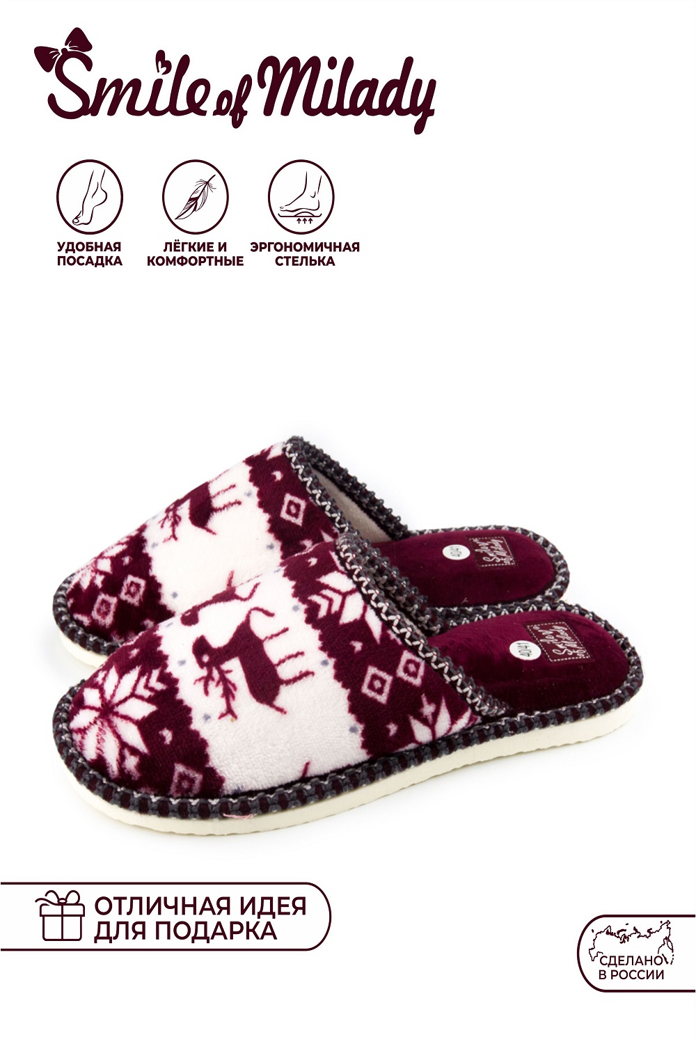 Стильные домашние женские тапочки от бренда Smile of Milady несомненно станут Вашими любимцами! Тапочки женские домашние для тех, кто ценит красоту, удобство и комфорт. Актуальный дизайн и расцветки, помогут оставаться в тренде даже в стенах собственного дома. Теплые тапочки женские домашние закрытые подарят тепло и комфорт Вашим ножкам. Домашние тапочки можно носить дома, на даче, а так же удобно взять с собой в дорогу. Дополните свой домашний образ стильными и ультрамодными тапочками. Тапки домашние женские, незаменимая вещь дома. Домашние тапочки женские станут идеальным подарком на 8 марта для мамы, бабушки, дочки, подруги. Гибкая подошва нашей домашней обуви, выполненная из экологического материала ЭВА, обеспечит амортизирующий эффект, снижающий усталость ног. Цвет: бордовый; Материал: ; Состав: текстиль 60%, EVA 40%.