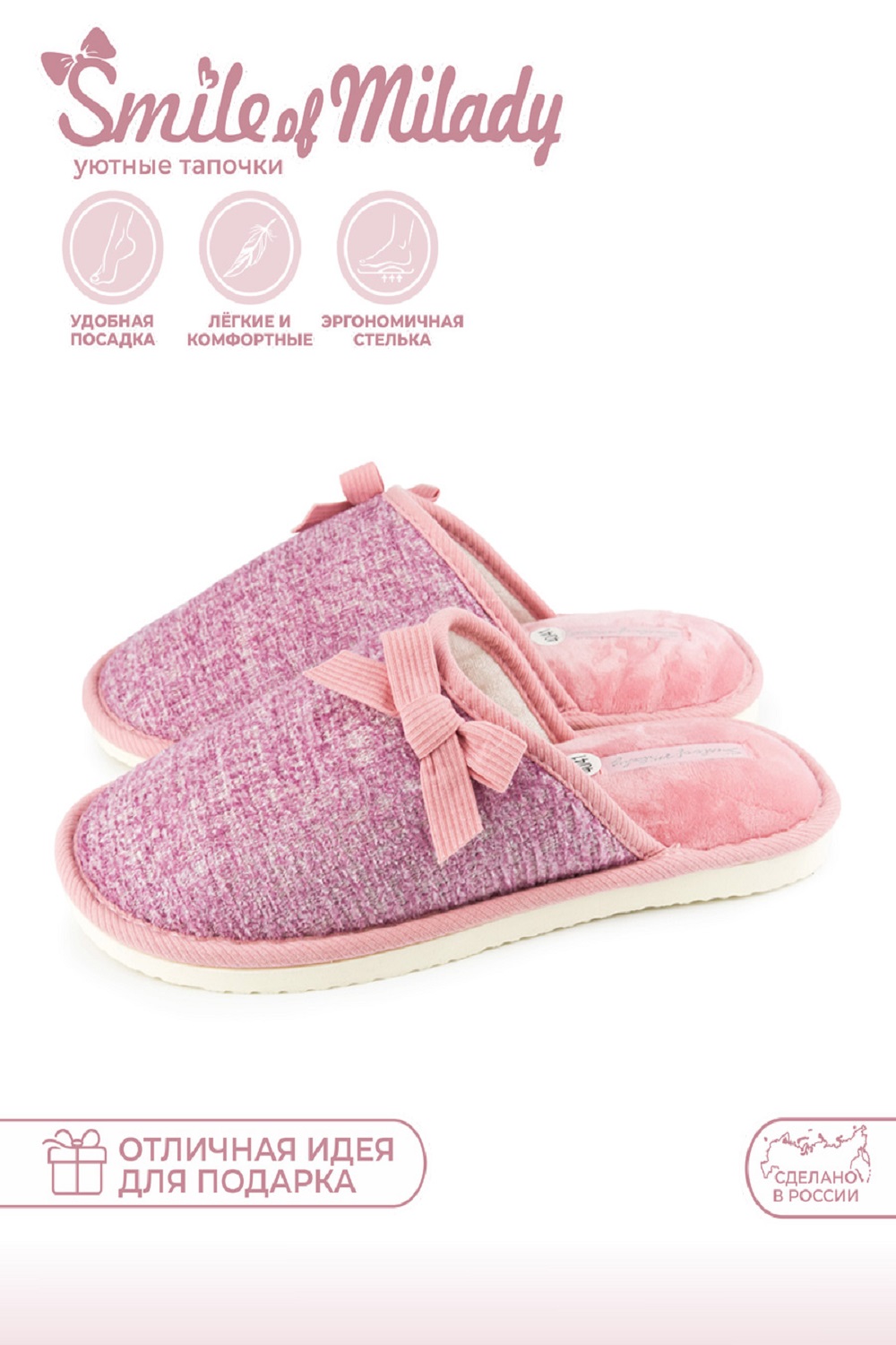 Комнатные женские тапочки от бренда Smile of Milady - стильная и комфортная домашняя обувь. В этих велюровых закрытых тапках нога отдыхает после насыщенных рабочих будней и активных выходных. Модель теплая, пригодится в межсезонье и зиму