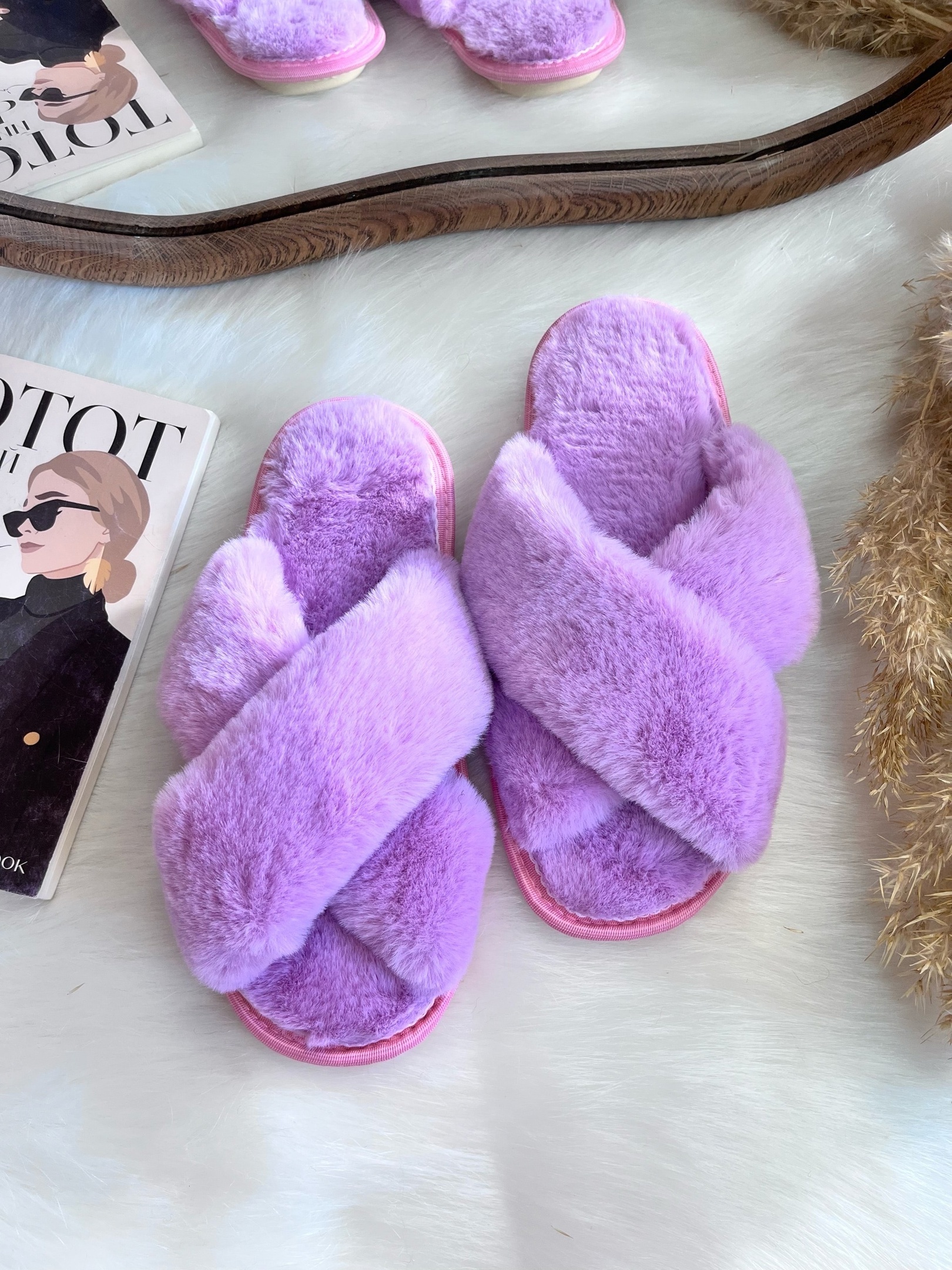 Тапочки из искусственного меха "кролик" в виде переплетенных полосочек.