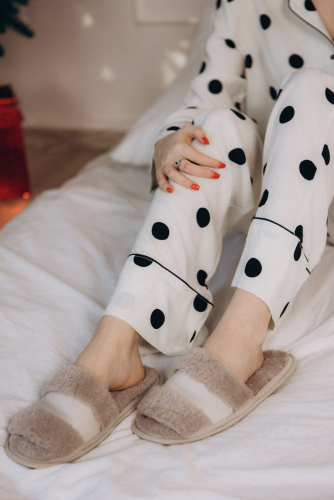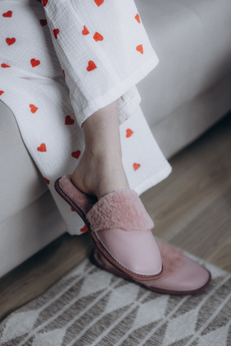 Тапочки из эко кожи и эко меха под керли. Очень мягкая и приятная кожа.