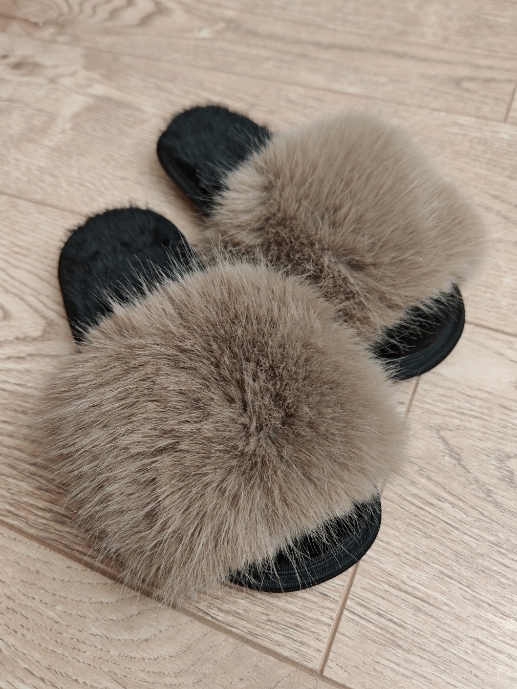 Тапочки из эко песца "Капучино"/открытый носок
