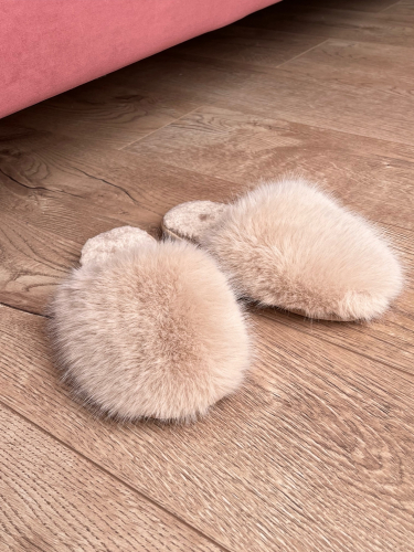 Тапочки из эко песца "Розовый"/закрытый носок
