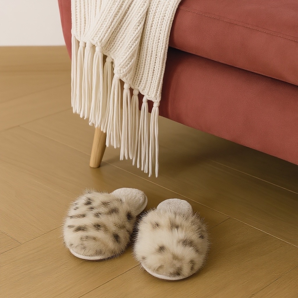 Наши тапочки — это идеальное сочетание комфорта и стиля. Верх тапочек выполнен из пушистого меха с окрасом под «рысь», что придаёт им уникальный и привлекательный вид. Благодаря мягкой и приятной на ощупь поверхности, эти тапочки станут вашим любимым домашним аксессуаром.