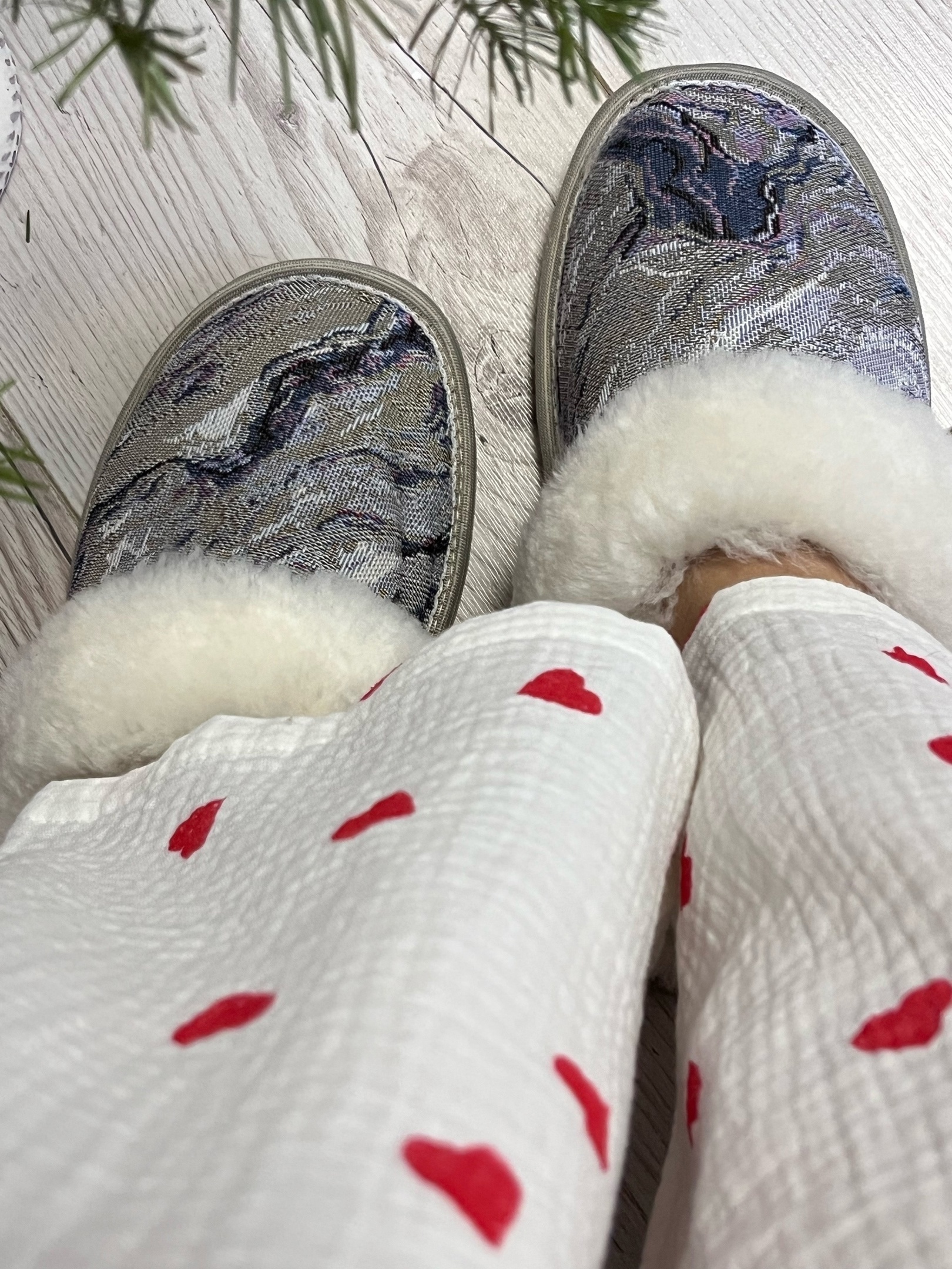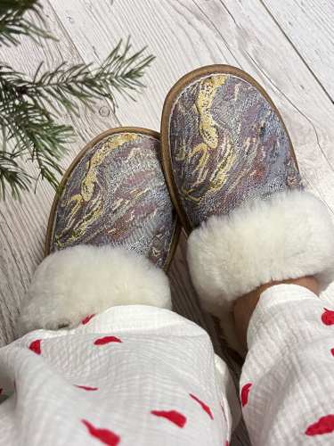 Тапочки из овчины и гобелена "Голубая волна"