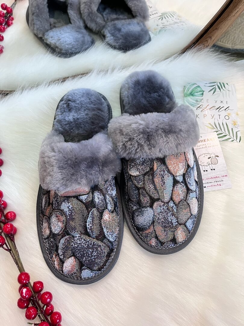 Тапочки из овчины и гобелена "Камни"