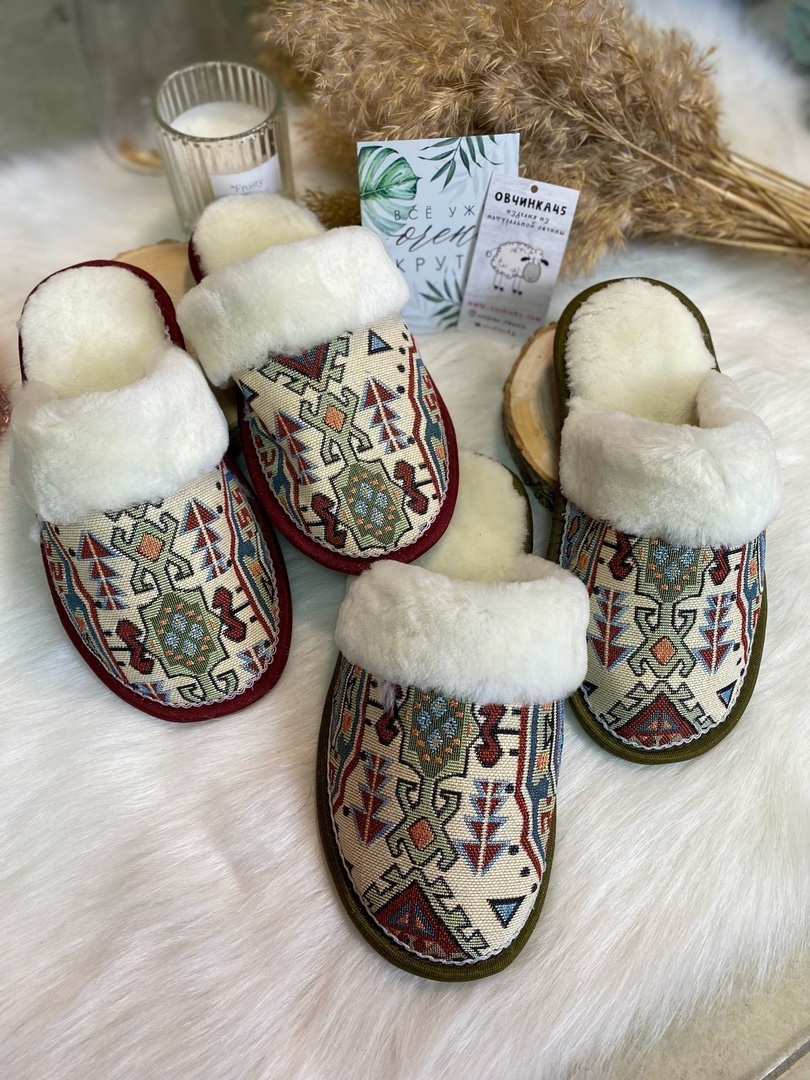 Тапочки меховые в комбинации с натуральным гобеленом. При изготовлении изделий, используется качественная Австралийская овчина, которая создает эффект сухого тепла: циркуляция воздуха не дает ножке потеть. Легкая, нескользящая полимерная подошва в сочетании с дизайном - идеальный баланс между комфортом и стилем. Данная модель рассчитана на средний подъем и полноту ноги. Обращаем ваше внимание, что цвет изделий на экране устройств может отличаться от реального, допустимы незначительные отклонения в указанной цветовой гамме.