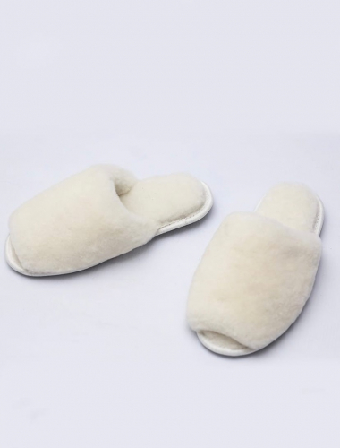 Тапочки из овчины/открытые/белые