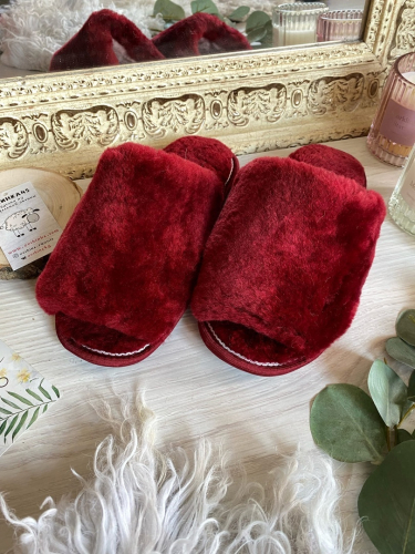 Тапочки из овчины/открытые/бордовые