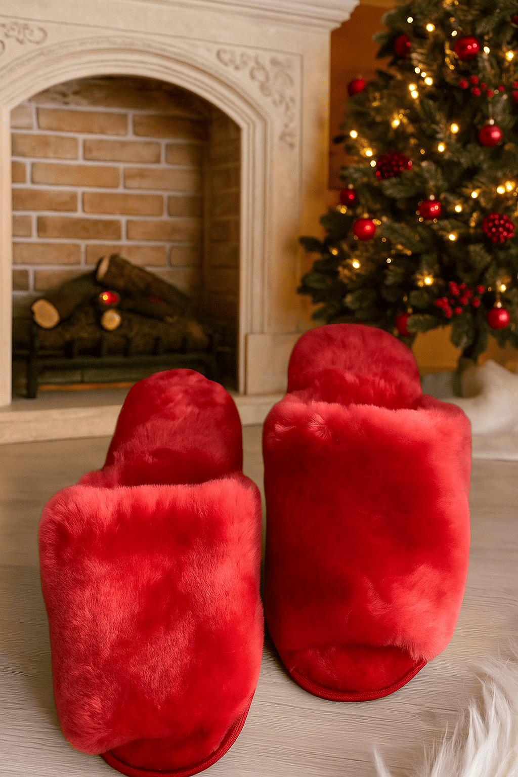 Тапочки из овчины/открытые/темный коралл