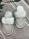 Тапочки из овчины с помпоном/жемчужные