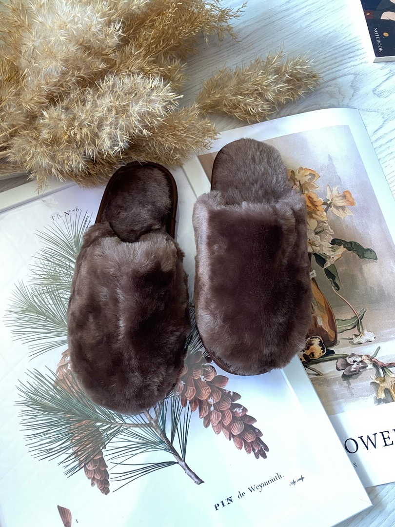 Тапочки из овчины/закрытые/коричневые
