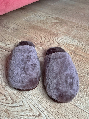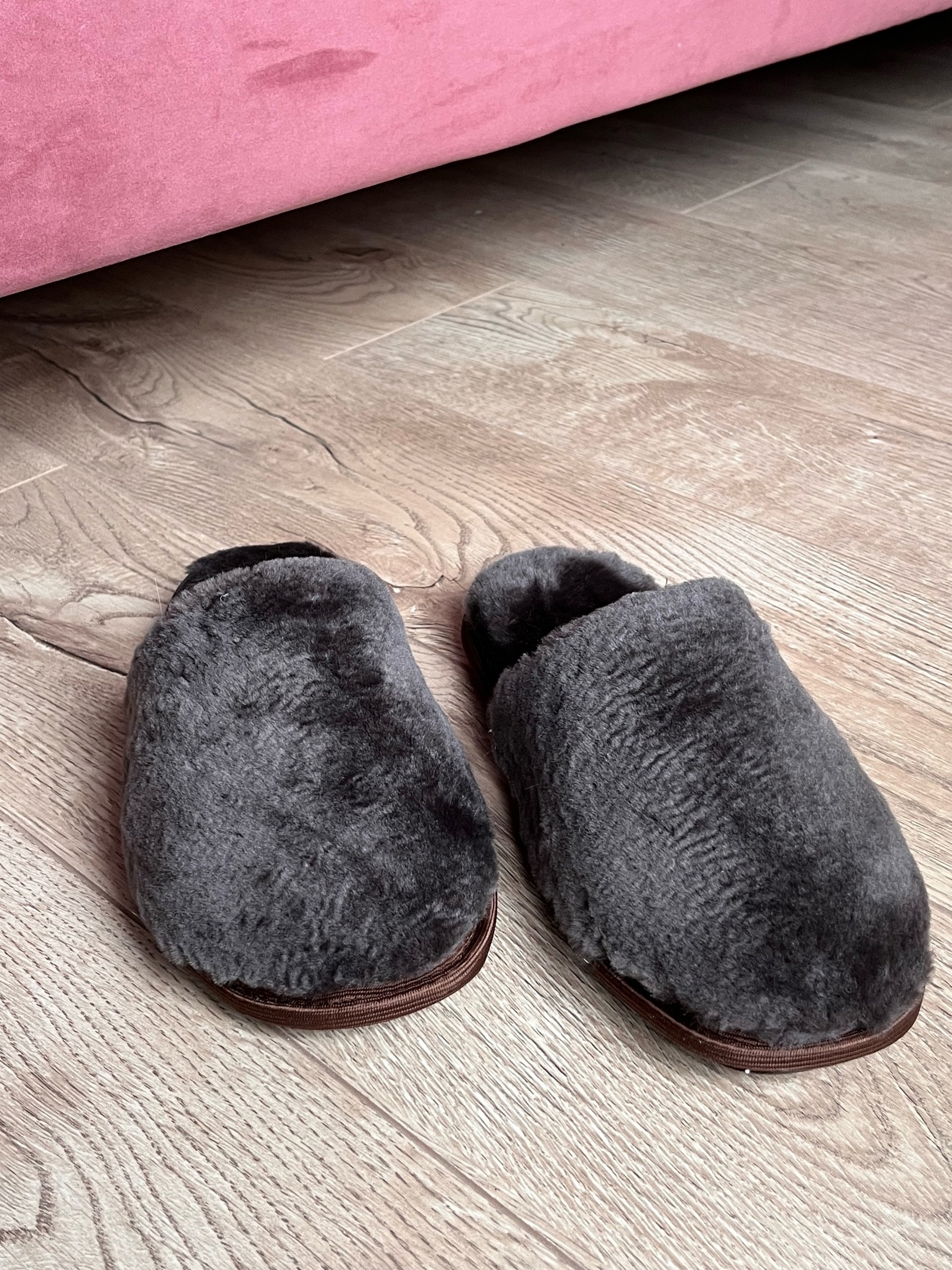 Тапочки из овчины/закрытые/тёмно-коричневые