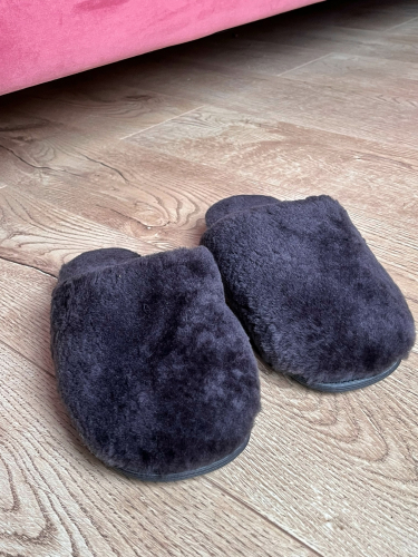 Тапочки из овчины/закрытые/темно-серый