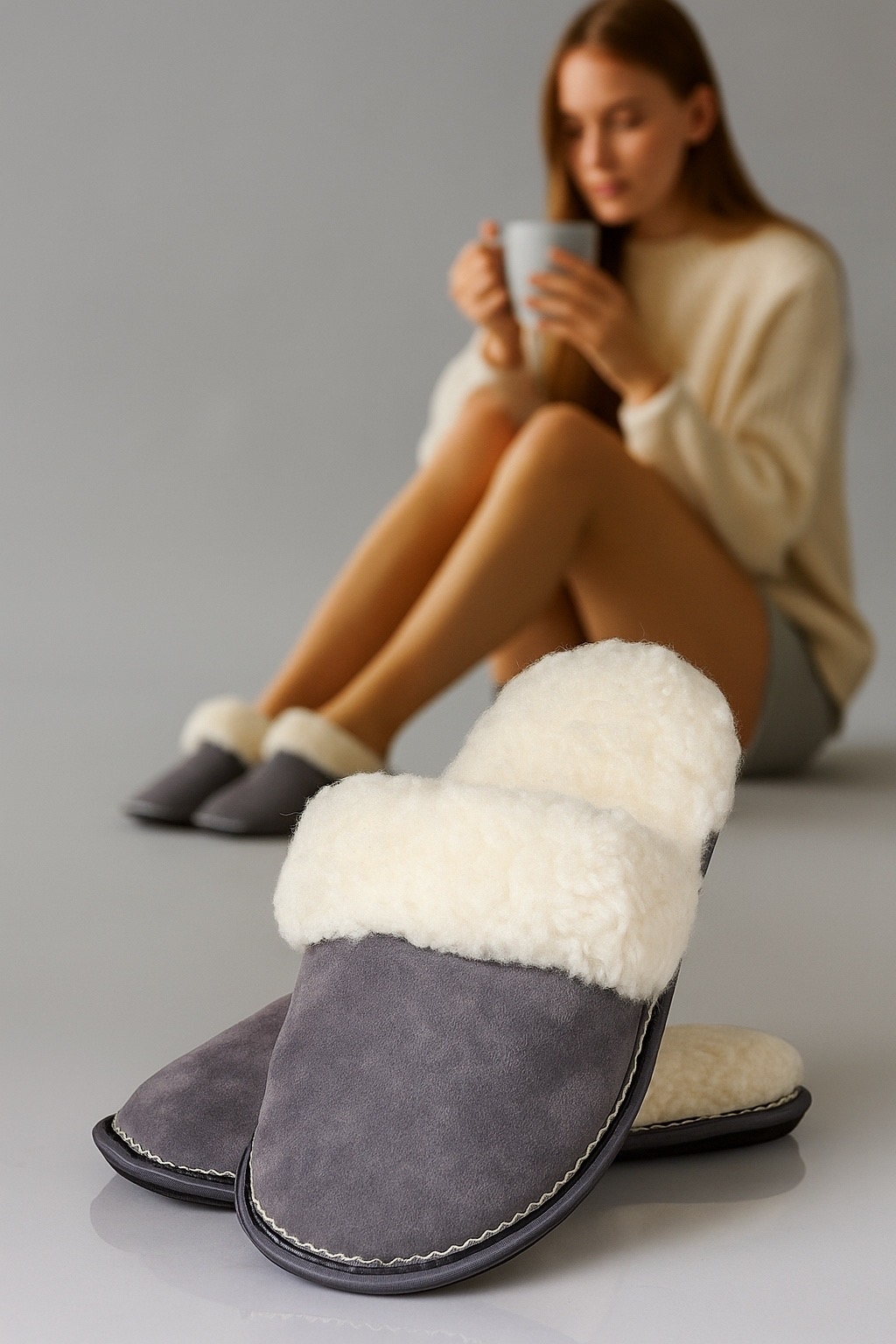 Овчинные тапочки из натуральной замши серого цвета с мягким мехом молочного оттенка обеспечивают уют и тепло в холодные дни. Благодаря качественной подошве из полиуретана они надежны и удобны для домашнего ношения. Размерный ряд с 36 по 41. Сделайте свой день комфортнее — закажите сейчас и почувствуйте разницу!