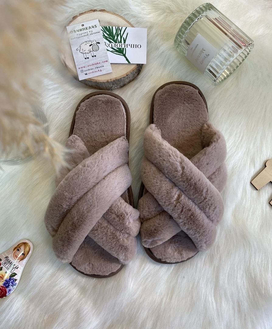 Тапочки "Параллельки" эко мех/мокко