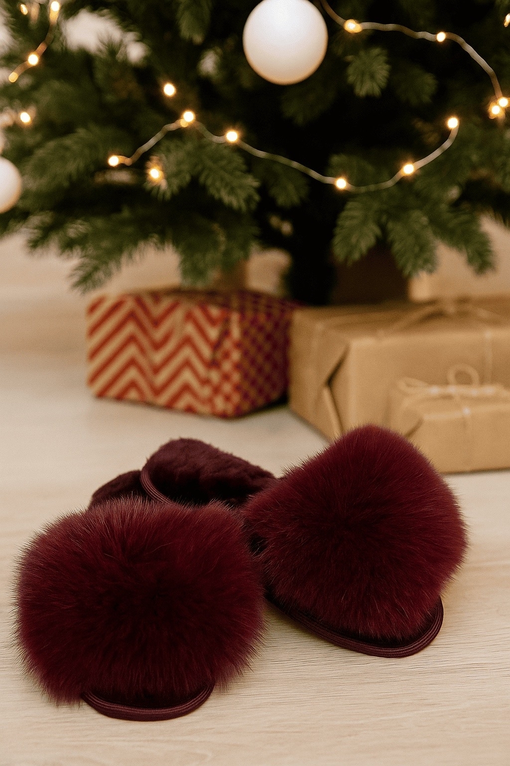 Тапочки с финским песцом + овчина Бордовый/эксклюзив/37
