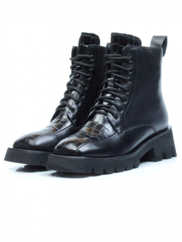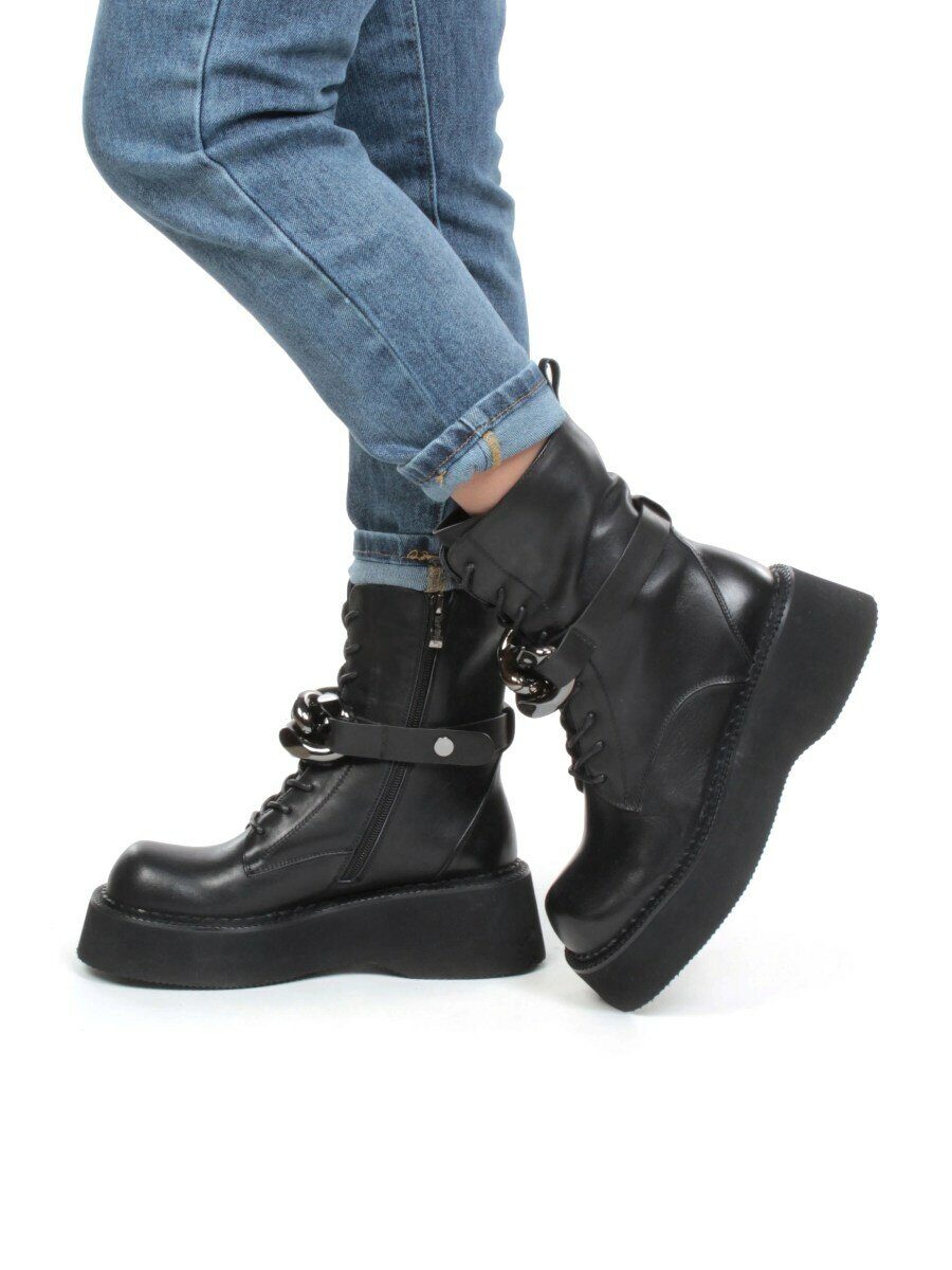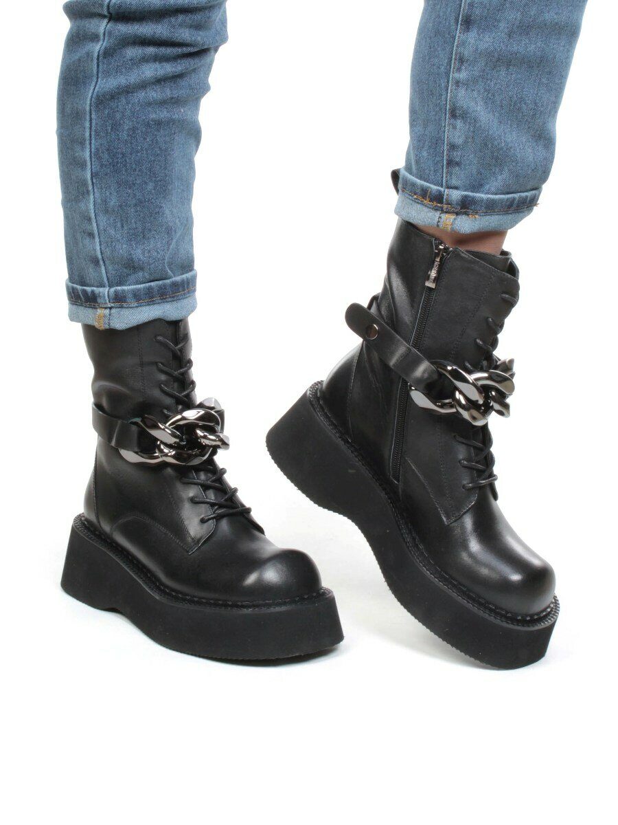 01-CYX03-1 BLACK Ботинки демисезонные женские (натуральная кожа, байка)