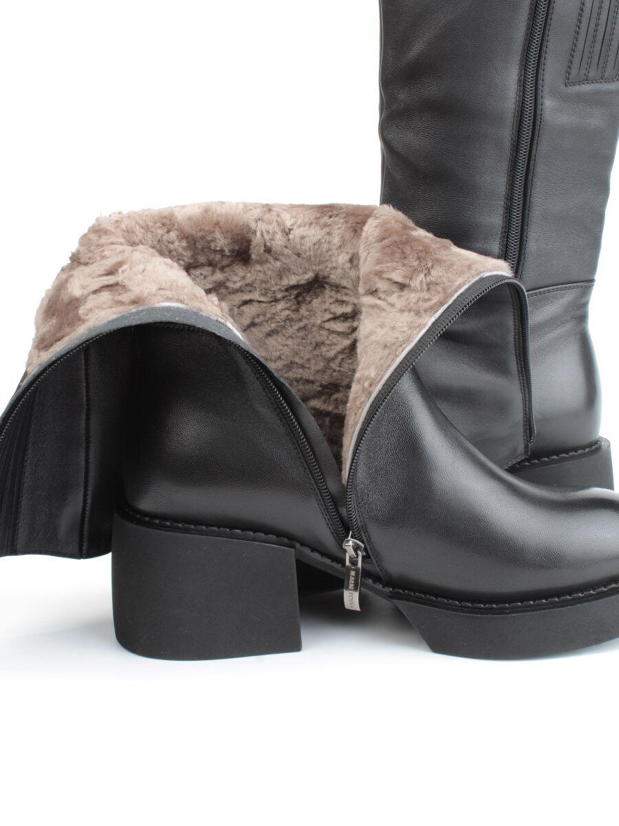 02-FI908-1M BLACK Сапоги зимние женские (натуральная кожа, натуральный мех)