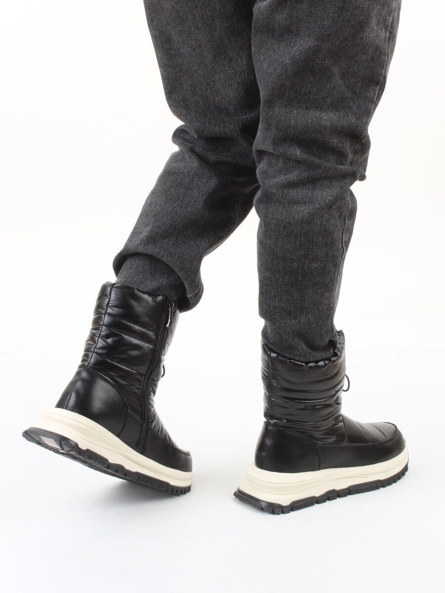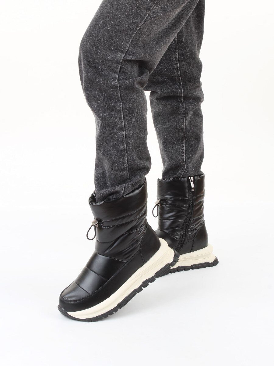 02-WA010-1M BLACK Сапоги "Дутики" зимние женские (натуральная кожа, курточная ткань, 100% шерсть)