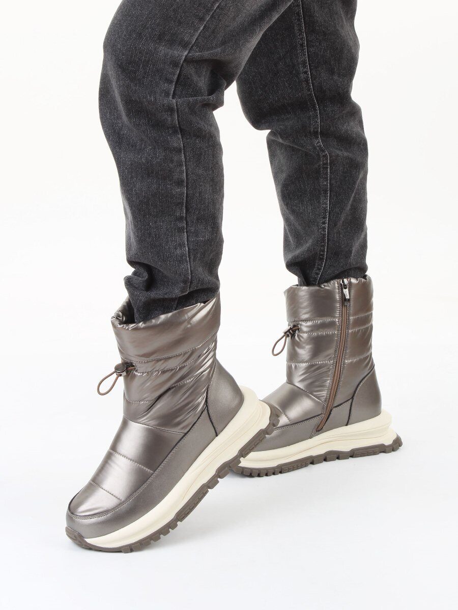 02-WA010-2M GRAY/BRONZE Сапоги "Дутики" зимние женские (натуральная кожа, курточная ткань, 100% шерсть)