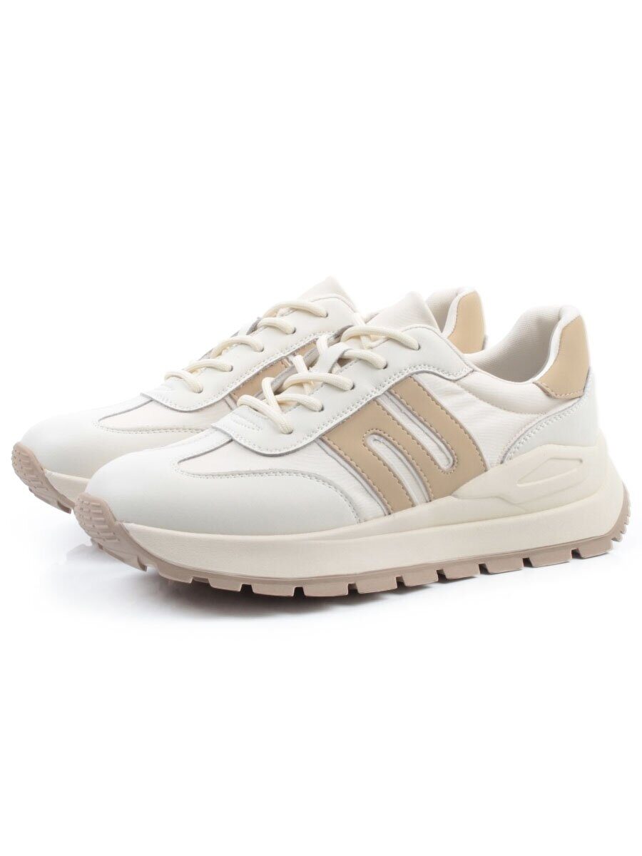 03-WG040-2M MILK/BEIGE Кроссовки демисезонные женские (натуральная кожа)