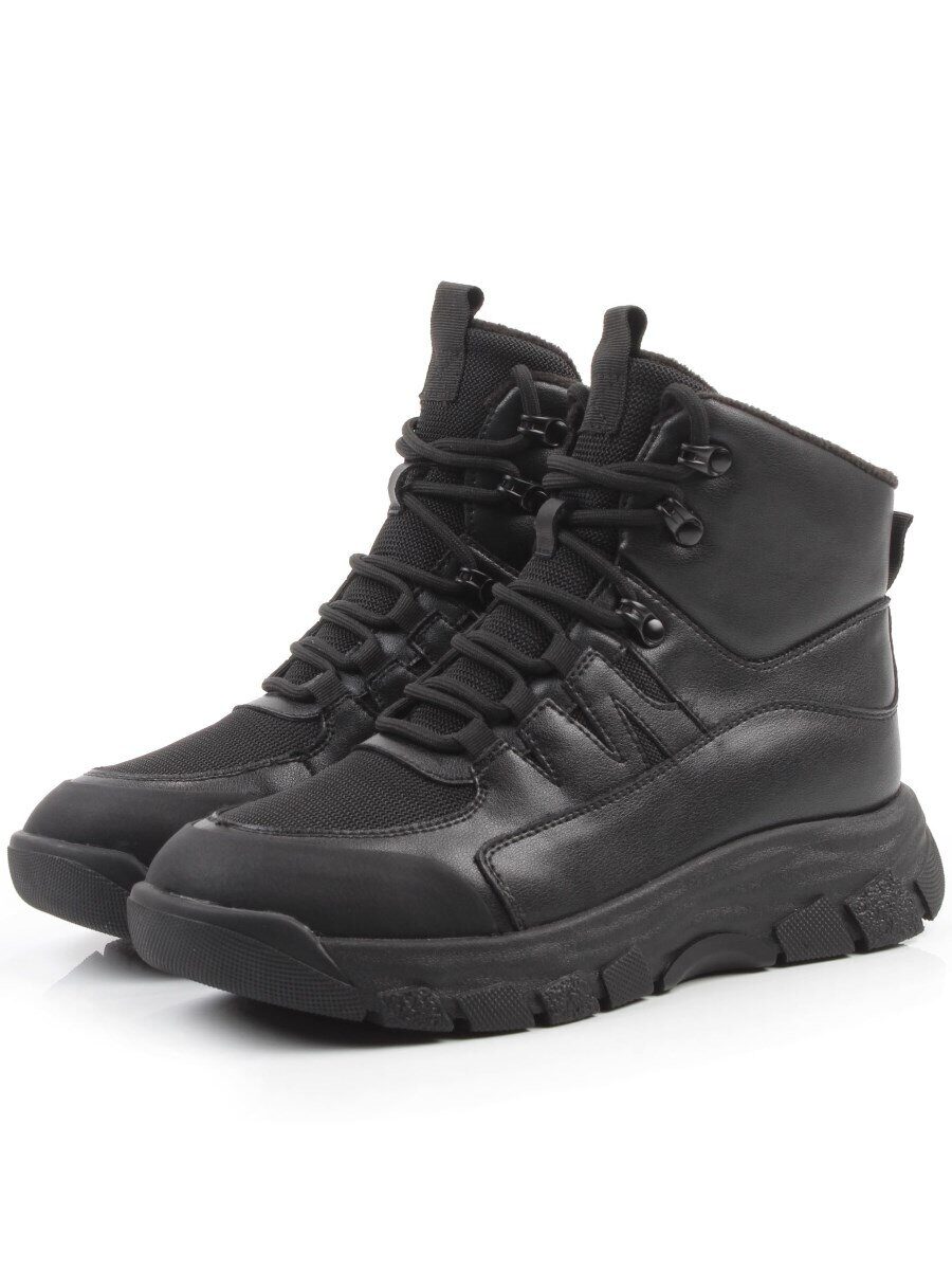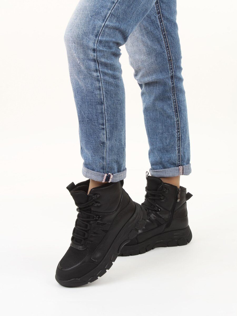 04-WB011-1M BLACK Кроссовки зимние женские (натуральная кожа, 100% шерсть)