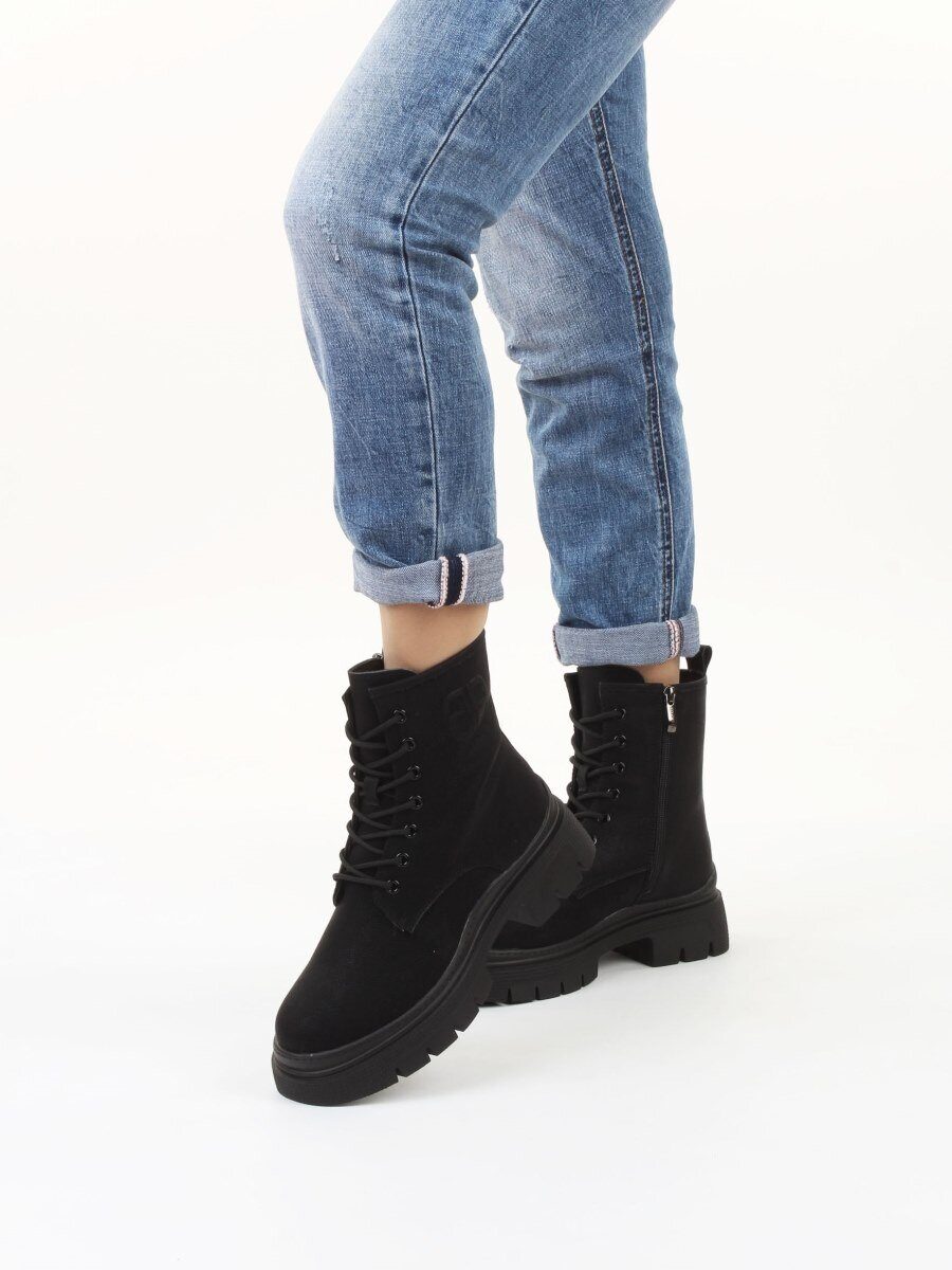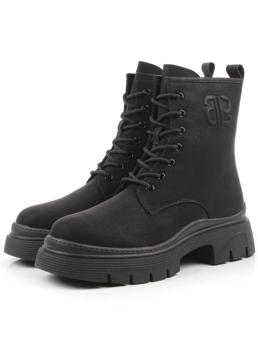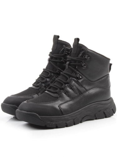 04-WD022-1M BLACK Ботинки зимние женские (натуральная кожа, 100% шерсть)