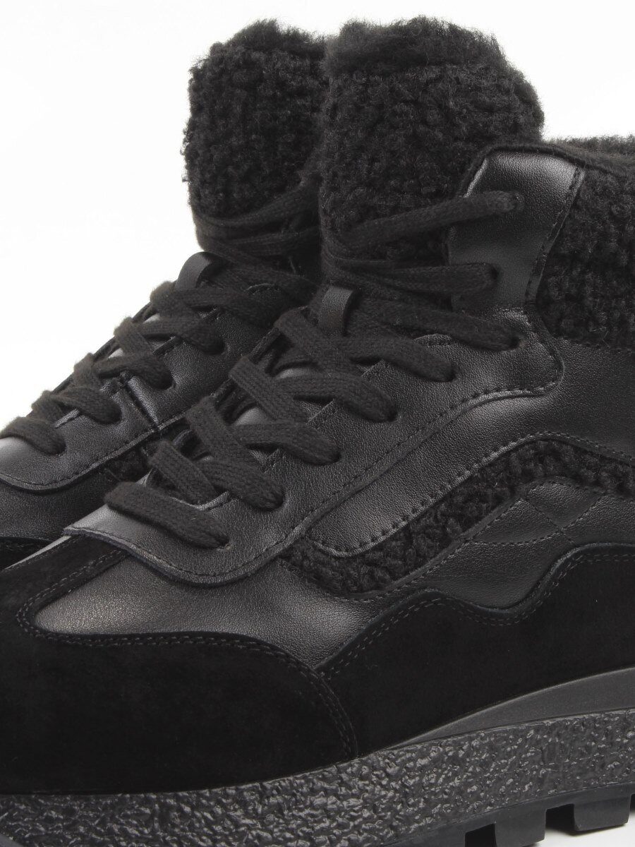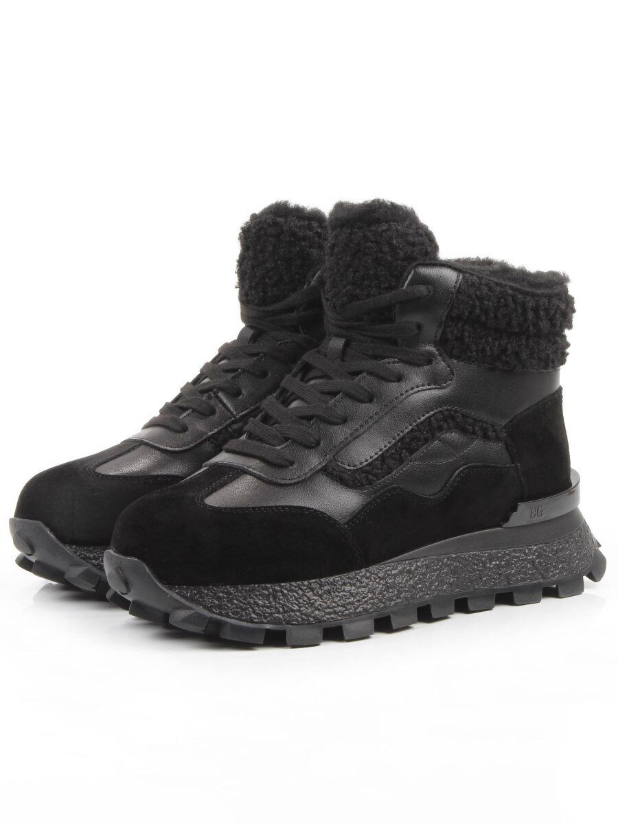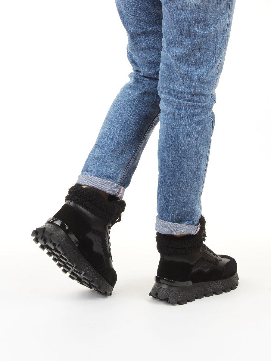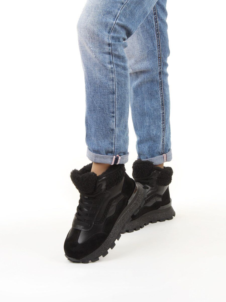 04-WG042-1M BLACK Кроссовки зимние женские (натуральная кожа, натуральная замша, 100% шерсть)