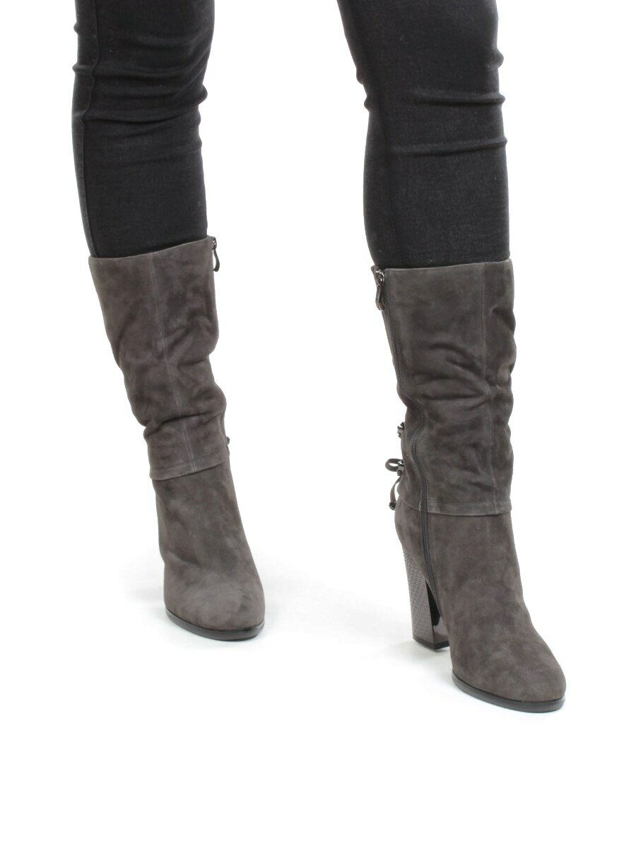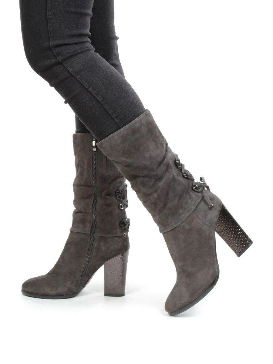 02-YF189-201M DK.GREY Полусапоги зимние женские (натуральная замша, натуральный мех (еврозима))