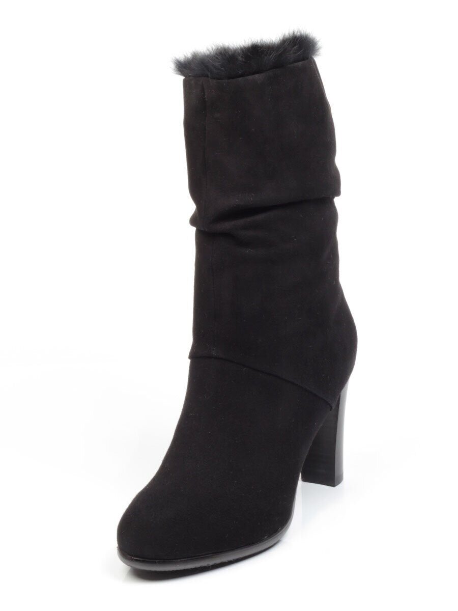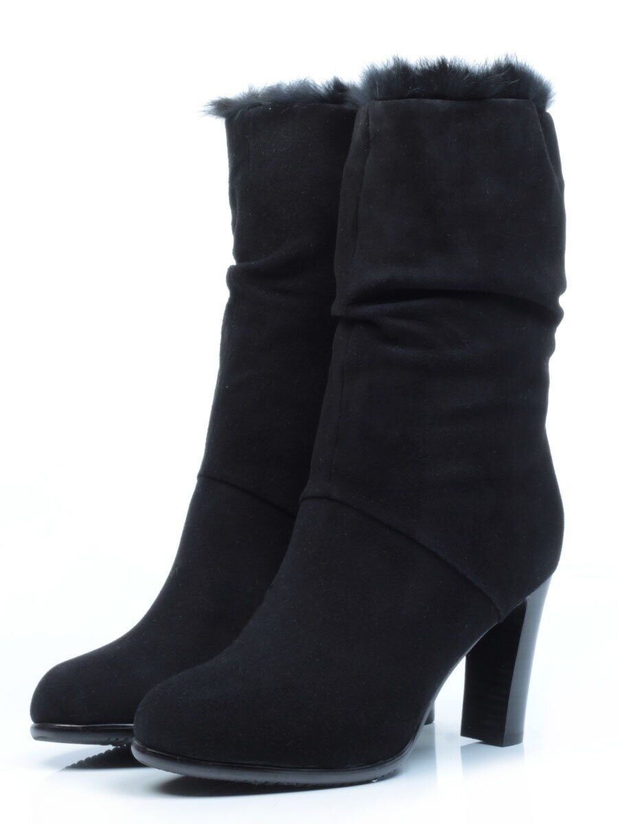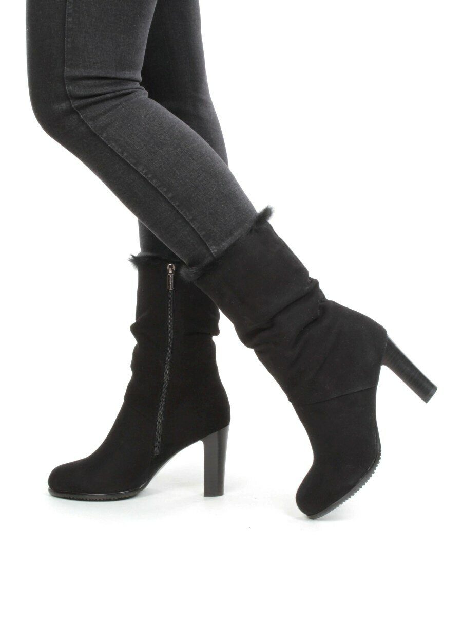F16-181M BLACK Полусапоги зимние женские (натуральная замша, натуральный мех (полностью))