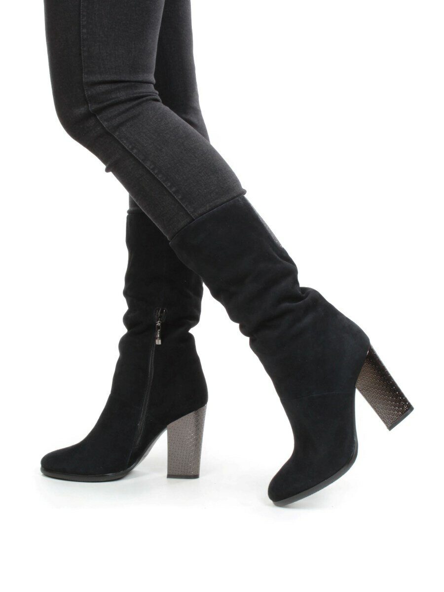 YF189-013M BLUE Полусапоги зимние женские (натуральная замша, натуральный мех (еврозима))