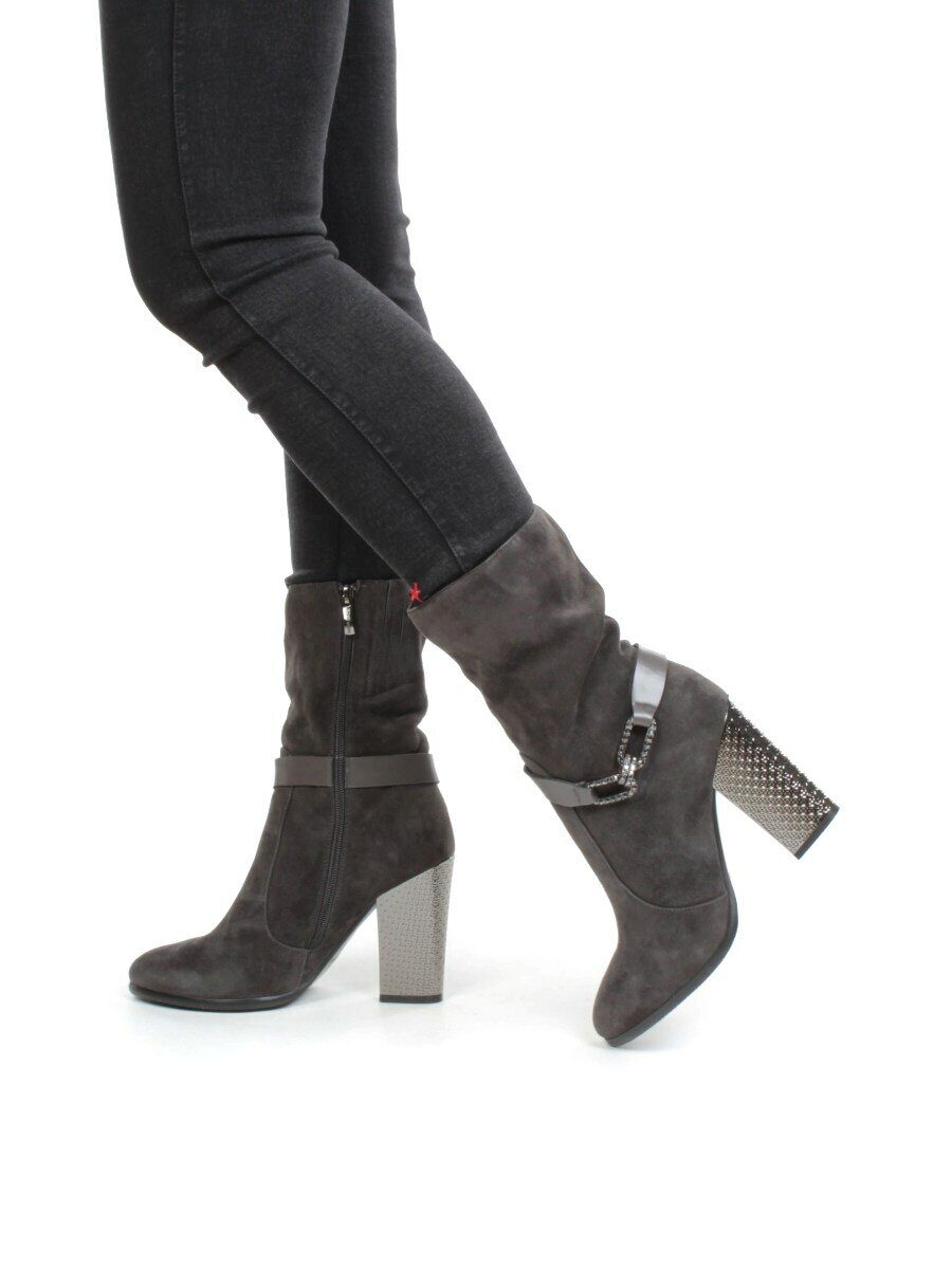 YF189-062M DK.GREY Полусапоги зимние женские (натуральная замша, натуральный мех (еврозима))