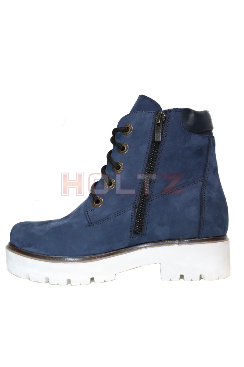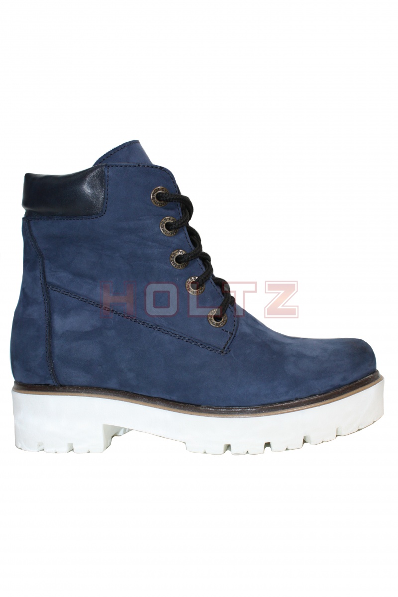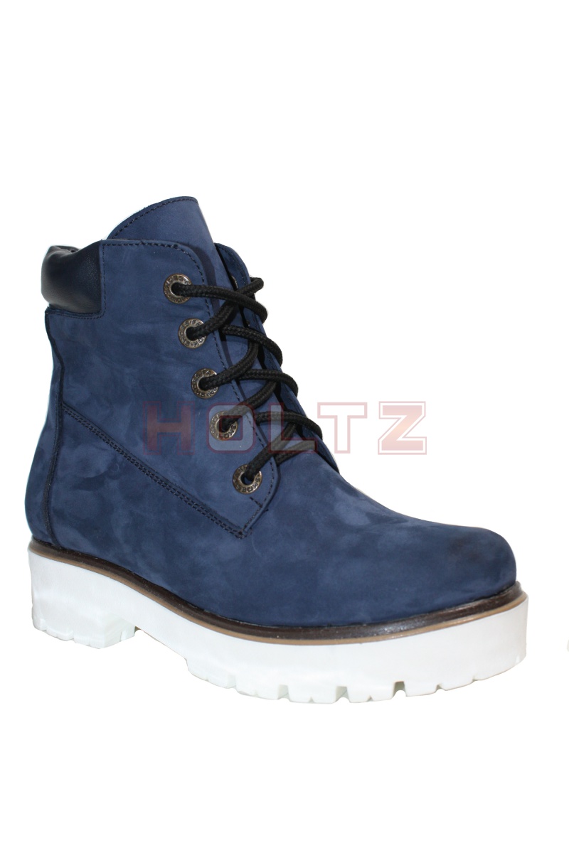 Осенне-весенние ботинки 128/1 из синего нубука на толстой белой подошве