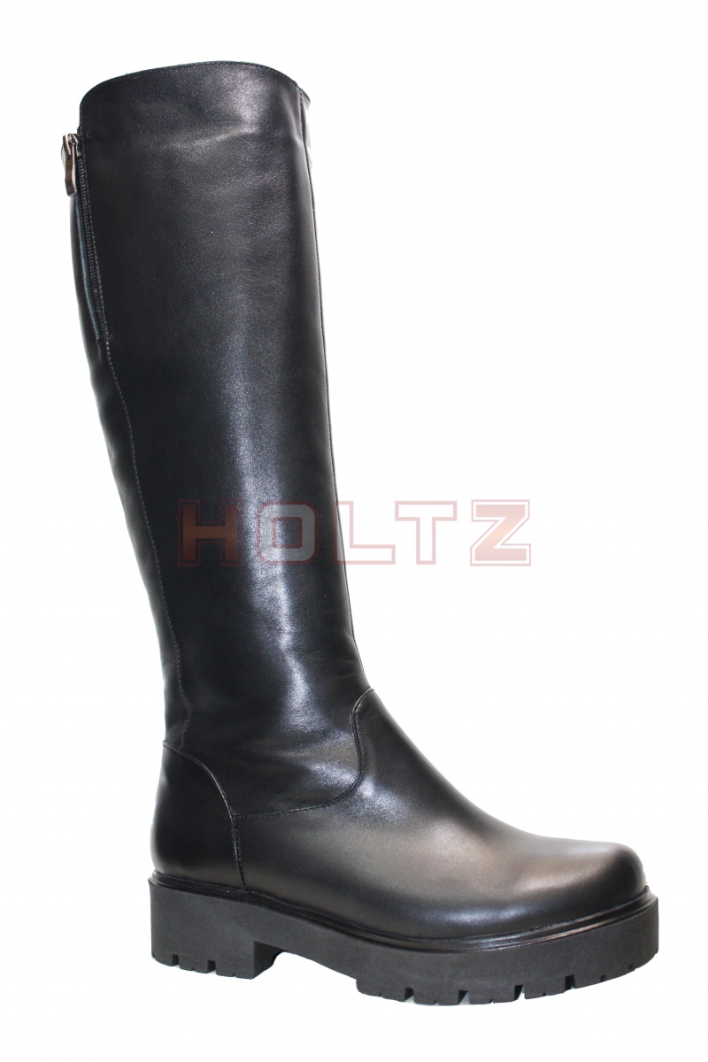 Осенние сапоги из черной гладкой кожи на платформе 130