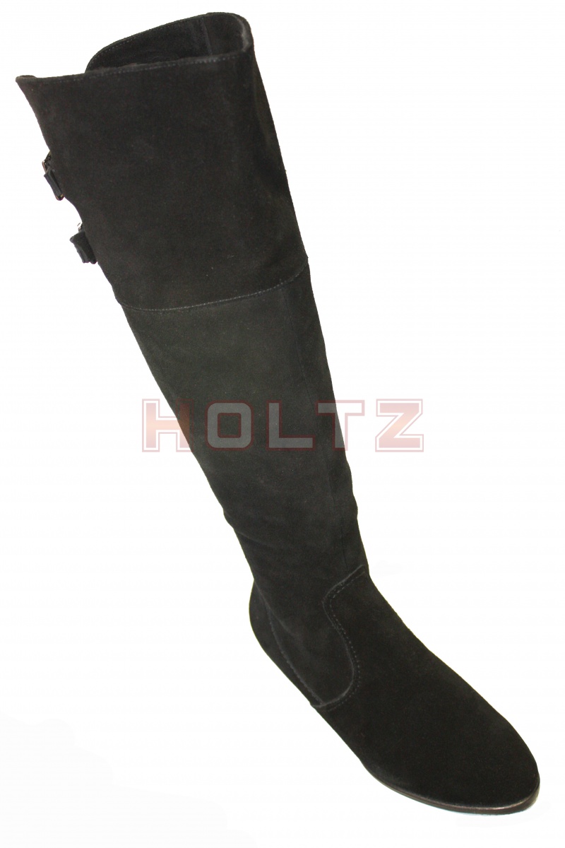 Женские сапоги от Санкт-Петербургского производителя Buffalo, выполнениы из натуральной замши, подкладка из натуральной байки, французский каблучок. Высота каблука 3 см. Обхват голенища 34 см у 37 размера. Высота голенища 44 см.