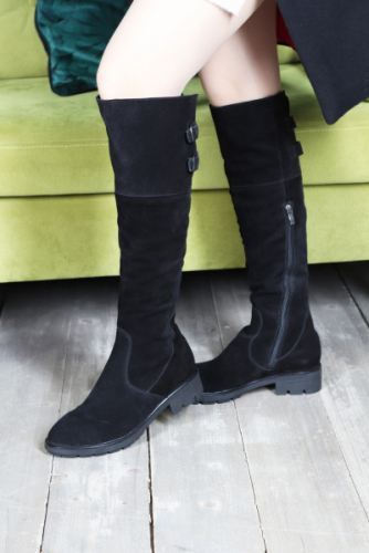 Высокие сапоги на осень из новой коллекции Санкт-Петербургского производителя Buffalo. Выполнены из мягкой овечьей кожи. Французский каблучок высотой 2.5 см. Высота голенища 45 см. Ширина голенища у 37 размера- 39 см. Молния сбоку не по всей длинне.