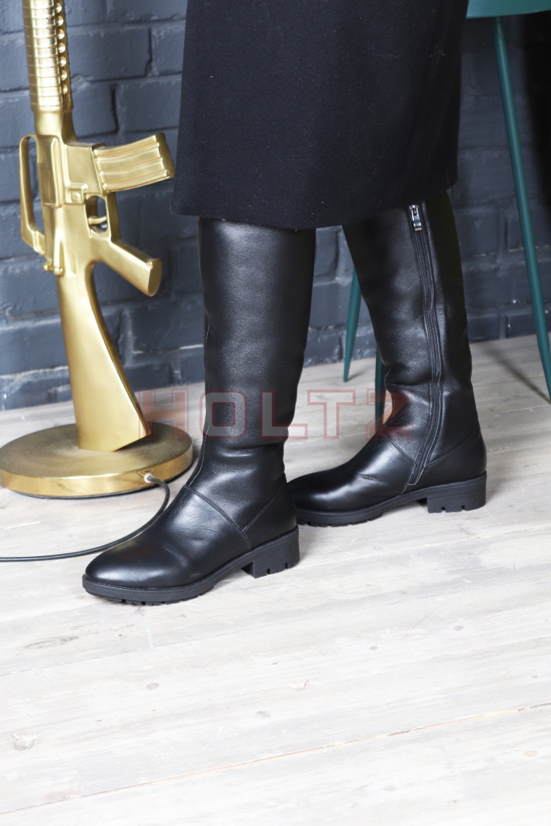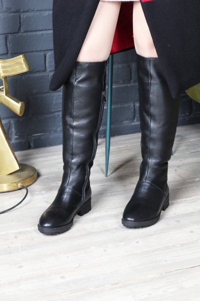 Женские черные кожаные зимние сапоги 50 Trinity на широкую голень
