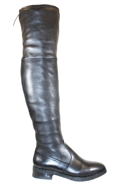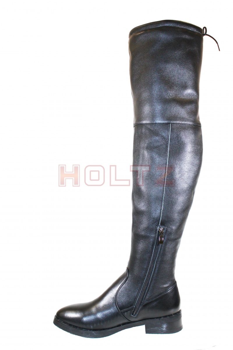 Женские демисезонные черные кожаные ботфорты из новой коллекции Trinity Black. Натуральная итальянская кожа. Высота выше колена 60 см. Подошва из зимнего Тунита с гвоздями не скользящая и не требующая набоек.