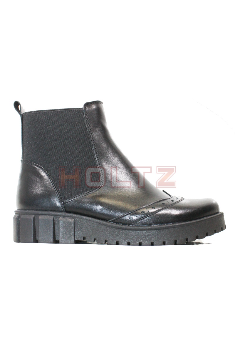 Женские демисезонные ботинки на резинке из черной кожи с брогиированием Astra