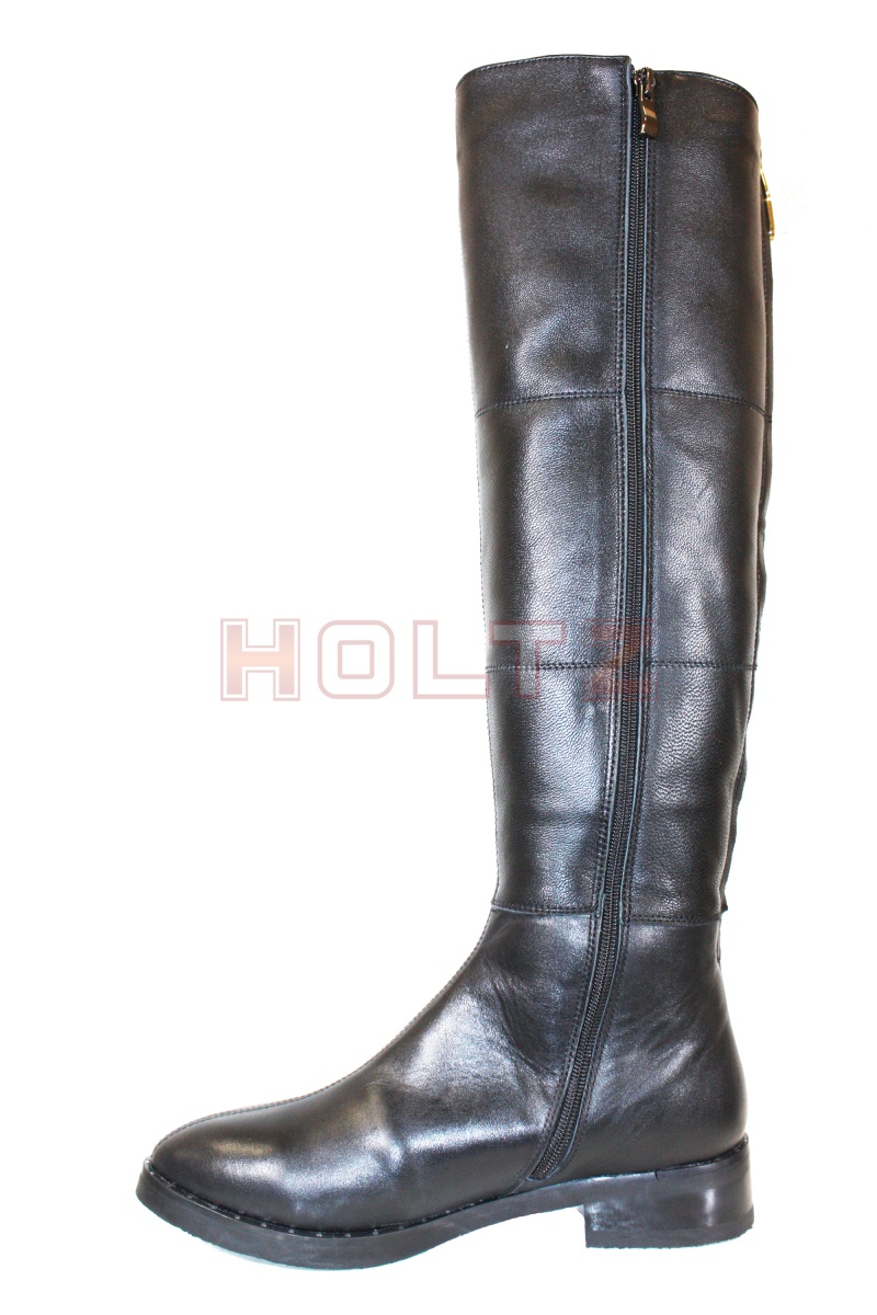 Женские демисезонные высокие черные кожаные сапоги Trinity 2