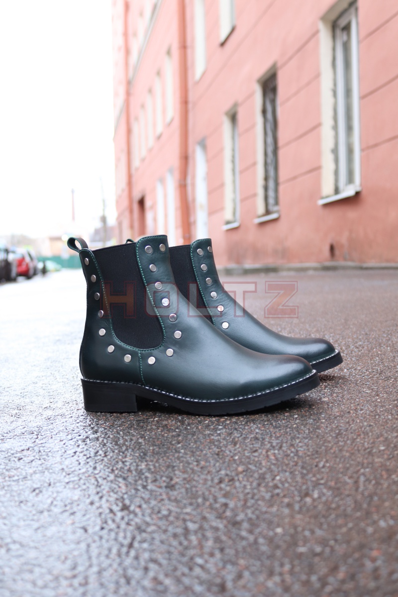 Женские демисезонные зеленые челcи Brenda с гвоздями и заклепками